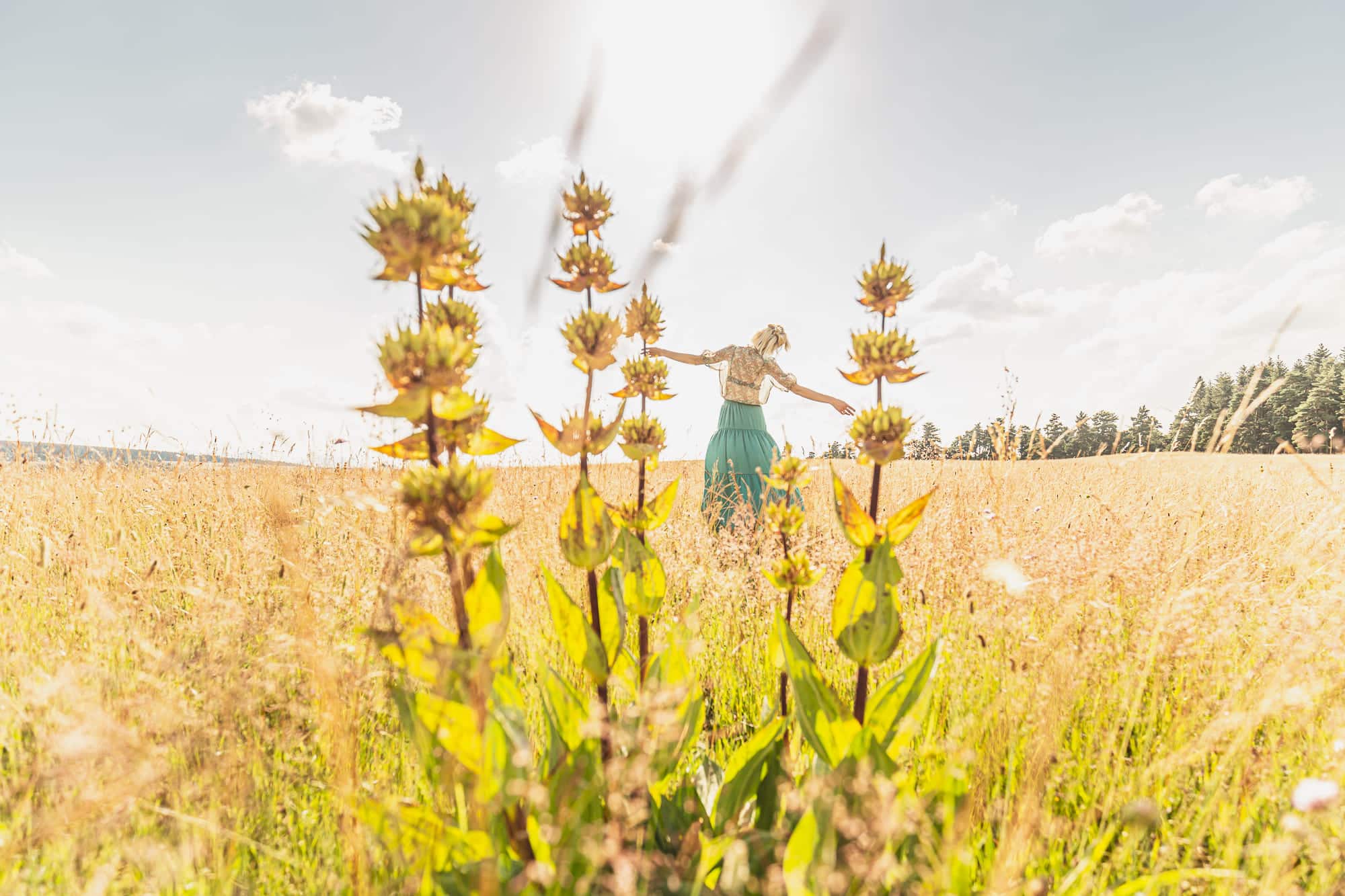 Aujourd’hui, les prairies d’altitude remplacent les anciennes coulées de lave, et les troupeaux ponctuent les paysages ouverts essaimés de burons au-dessus desquels planent les milans royaux. Des hautes terres volcaniques appelées planèzes, pâturées par les vaches Salers. La grande gentiane jaune y fleurit au côté d’une biodiversité floristique impressionnante. Reine-des-prés, achillée millefeuilles, millepertuis, gaillet composent un véritable tapis de couleurs.